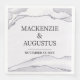 These romantic wedding napkins feature a modern and elegant theme. The names of the bride and groom, or newlywed couple, are printed across the centre which you can change to include your own custom names or text. The wedding date is printed below. An agate stone pattern is printed along the top and bottom portions, with accents of silver glitter. The background is a soft grey colour.