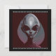 Vectorised portrait artwork features a grey alien face staring forward with a film strip border. This unsettling extraterrestrial has large eyes tinted blue. For fans of first contact and alien invasion science fiction!