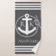 Grey Anchor Stripes Anchors Custom Bath Towel. Simply edit text to personalise!