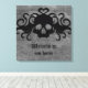 Cute wrapped canvas with a black vampire skull with fangs with a touch of girly swirls and a heart on top against a grey grungy back ground. You can easily change the text.