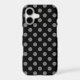 Grey polka dots with a floral pattern on black background