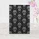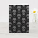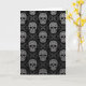 This unique grey and black pattern is inspired by Day of the Dead sugar skulls. Each symmetrical skull is decorated with intricate lines and dot patterns with flower pedals around each eye. Large swirling lines appear in between the skulls which gives the design a Victorian feel. A large five point star appears in the middle of each skulls forehead with a small heart shape appearing just underneath. This stunning pattern is a beautiful and stylish celebration of The Day of the Dead.