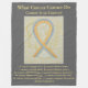 The poem words say "What Cancer Cannot Do, Cancer is so limited... It cannot cripple love. It cannot shatter hope. It cannot corrode faith. It cannot destroy peace. It cannot kill friendship. It cannot suppress memories. It cannot silence courage. It cannot invade the soul. It cannot steal eternal life. It cannot conquer the spirit. -Author Unknown"