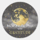 Grey and Gold Celestial Gratitude Thank You Classic Round Sticker. Personalise the text to read whatever you like!