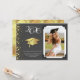 This modern design features a graduation hat and confetti in gold on a background of grey with white text.