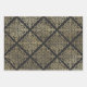 Vintage Paris grey and gold pattern wrapping paper in three different styles including grapes, ironwork, and antique calligraphy.
