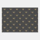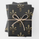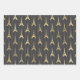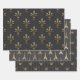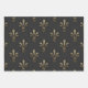 Vintage Paris grey and gold pattern wrapping paper in three different styles including fleur de lis, Eiffel Tower, and crown patterns.