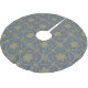 Festive grey, white, gold snowflakes christmas pattern on tree skirt.
