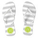 Grey and Green Preppy Stripes Monogram Flip Flops