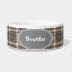 Stylish maroon and grey plaid design pet food bowl. Great for cats or dogs. Personalise it with your pets name.