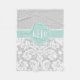 Grey and Mint Damask Polka Dots Monogram Fleece Blanket