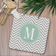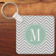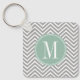 Grey and Mint Green Chevron Pattern with Monogram Key Ring