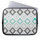 Grey and Mint Tribal Print Ikat Diamond Pattern Laptop Sleeve