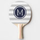 Grey and Navy Preppy Stripes Monogram Ping Pong Paddle