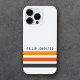 Grey and orange retro stripes custom name white Case-Mate iPhone case