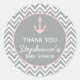 Grey and Pastel Pink Chevron Nautical Baby Shower Classic Round Sticker