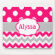 Show off your personal style in a fun way with this grey and hot pink polka dots and chevron personalised mousepad.