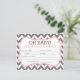Pass out these cards at your baby shower for a fun game that you get to cherish forever!  Featuring a dark grey and white chevron striped print background and pink accents.