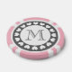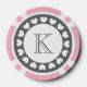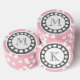 Grey and pink wedding poker chips with bride and groom monogram. Customisable initials in ring of hearts. Personalised party poker chips with monogrammed name initial of wedding couple. Cute gift idea for wedding guests. Charcoal grey and pink tokens. Vegas style wedding favour.