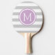 Grey and Purple Preppy Stripes Monogram Ping Pong Paddle