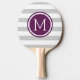 Grey and Purple Preppy Stripes Monogram Ping Pong Paddle
