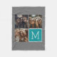 Grey and Teal Square 3 Photo Collage Monogram Fleece Blanket