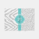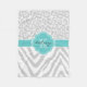 Grey and Turquoise Animal Print Custom Monogram Fleece Blanket