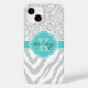 Grey and Turquoise Animal Print Monogram Case-Mate iPhone Case