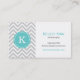 Grey and Turquoise Chevron Custom Monogram Business Card