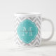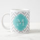 Grey and Turquoise Chevron Custom Monogram Large Coffee Mug