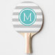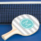 Grey and Turquoise Preppy Stripes Monogram Ping Pong Paddle