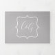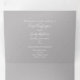 Elegant grey textured looking all in one wedding invitation, reception card and RSVP post card. The bride and groom's monograms, set in a white frame, are on the front of the card. Personalise every text fields with your information.