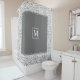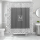 Grey and white damask pattern and square with scalloped borders shower curtain. It showcases a grey square with scalloped borders in the centre with a damask border and your monogram. You can personalise it with your family name and monogram.