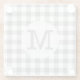 Grey And White Gingham Check Monogrammed Glass Coaster