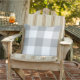 Pillow design features a casual gingham plaid / check pattern that is perfect for summertime! Note, you can customise the grey background colour to coordinate with your outdoor decor.