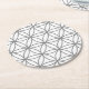 Grey and White Graphic Lotus Flower Design Round Paper Coaster