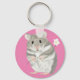 This lovely button key chain, zip pull, features a cute fluffy Grey and white Hamster holding a flower against a light grey background. A lovely gift or stocking filler.
