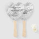 The fans are very pretty and easy to assemble. We utilized the original template and just inserted the names of our wedding party. After the product arrived we noted they read,”Made of Honor” rather than “Maid of Honor”. Upon re-checking the website we noticed the typo is in the original template and was not a mistake on our end. It is too late to return because our wedding is in just a few days but if we had time we would certainly request an exchange. See review above regarding typo.