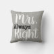 This delightful Mrs. (Always) Right throw pillow in grey and white is a perfect addition to any couples’ bed! See my store for the matching Mr. Right pillow!