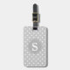 Travel in style with this trendy grey and white polka dots custom monogram luggage tag that features a grey accent on the front for your monogram initial and a grey frame on the back for your information. A cool and fun way to decorate and identify your luggage. Show your personality with this fun and trendy luggage tag. Makes a great gift for all occasions. Customise with your personal or business information. Click the "Customise it!" button to change the text size, text colour, font style and more!