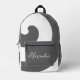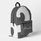 A trendy backpack, this design features grey and white swirls. On the front is a template for inserting your name in decorative white font. Customise as your wish using photos, graphics, and other elements. Order your bookbag today!