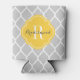 Grey and Yellow Moroccan Quatrefoil Monogram Can Cooler