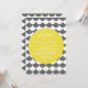 Baby shower invitation featuring grey and white scallop / waves pattern and yellow badge. Modern and whimsical - perfect for beach and nautical themed baby showers.