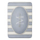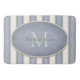 Grey & Antique White Stripes Oval Framed Monogram Bath Mat