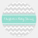 Baby shower favour tag sticker in elegant and fun bright turquoise teal blue, grey and white chevron zigzags pattern. Customisable with your own text, contact us for a colour change. The perfect way to decorate your baby shower favours or as envelope enclosures.
