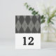 Classic and elegant Argyle Wedding Table Number Postcard with a simple grey diamond argyle pattern background. Easy to customise with your wedding details. For more customisation options, click on the Customise It button.