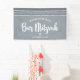 Be proud, rejoice and showcase this milestone of your favourite Bar Mitzvah! Hang up this cool, unique, modern, personalised banner to add to his special day. Bold, white script typography, Star of David, and a soft grey and silver glitter striped tallit inspired graphic overlay a simple, lighter soft grey background. Personalise the custom text with your Bar Mitzvah’s name and date or custom message. Guaranteed to preserve cherished memories of his special occasion! Matching and coordinating invites, address labels, stickers, keepsake binders, and other Bar Mitzvah goodies are also available in this trendy and special collection.