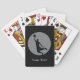 A silhouetted basketball player in process of dunking is within a grey circle on these playing cards. The circle is placed on a black background, with your custom text below in grey.