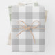 This listing is for three sheets of wrapping paper, each in a different colour traditional gingham check plaid pattern: grey, sand beige, and sage green.