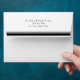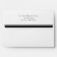 Stylish white football themed envelope, with a solid grey inside and a black and grey stripe on the back flap. Graphics of a black high heel kicking a grey and black football, decorates the left front corner of the envelope. Return address done in black text, on the back flap, is ready to personalise with your information. Great finishing touch to our matching football themed couple's wedding shower invitations.